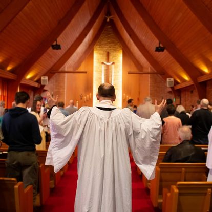 On a mid-July, rainy morning, the congregation was a healthy mix of young and old people of all kinds. Sprinkled through- out the congregation, t-shirts could be seen with the New Eng- land region’s idiom printed on the back, “Wicked good” (i.e. “very cool” or “awesome”). The sanctuary and balcony were mostly full; over an estimated 100 people in a church with 125-person capacity seating. Fr. Wolf patiently introduced and explained liturgical practices throughout the service. He was clearly aware that many in attendance had not grown up in the Anglican tradition.
